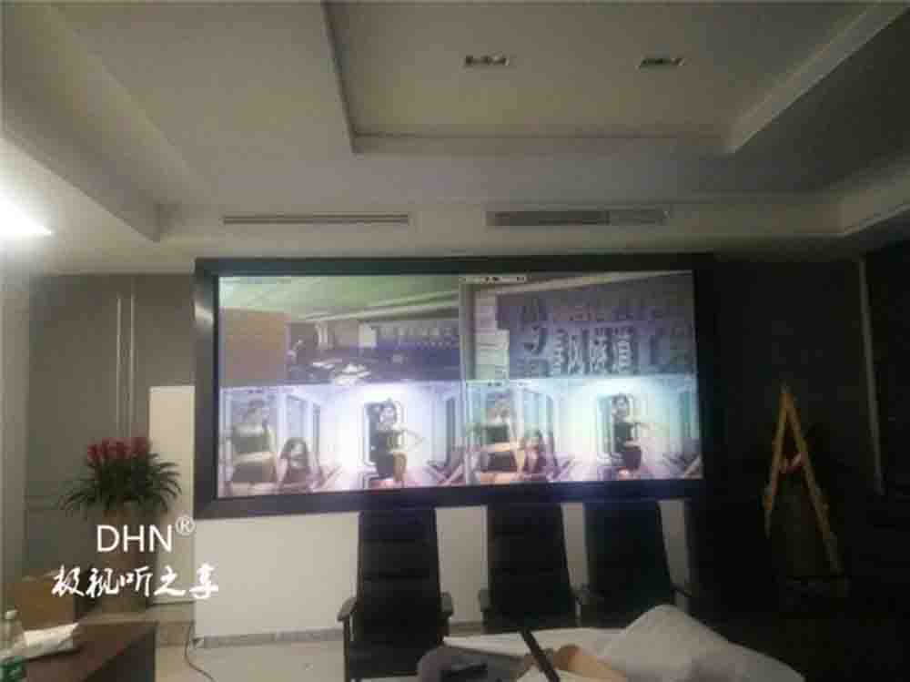 对于深圳中铁集团会议室吊顶设计,考虑后期长时间使用与稳定性等问题,投影机安装不能直接顶部安装,故而投影安装位置则采用托盘,分成两列进行安装。功能上,在多人会议讨论时,充分运用DM907触控功能,实现交互式应用。
