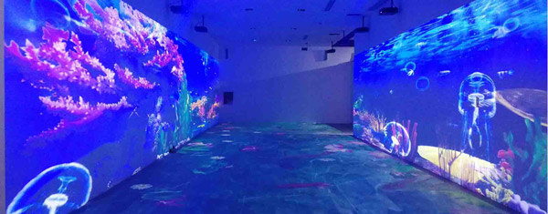 使用11台DU6100搭配3台DS405拼接处理器,对墙面就行投影,打造沉浸式······